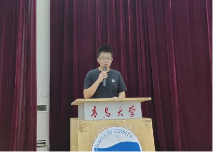 研究生新生代表王希雅发言。王希雅同学表达了对各位老师和领导的感谢,表达了作为新生应有的学术态度以及披荆斩棘的决心:实事求是,积极探索,追求卓越;修身明德,明辨是非。