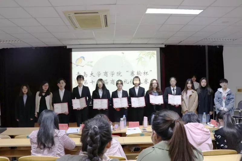 经过三轮的激烈角逐及评委们认真的点评后,最终获得第十二届“赛轮杯”商务礼仪大赛决赛一等奖的是万子莘同学,二等奖得主是周昕悦同学,三等奖得主是董世鑫同学,人气奖得主是孙小凡同学,其余同学均获得优秀奖。