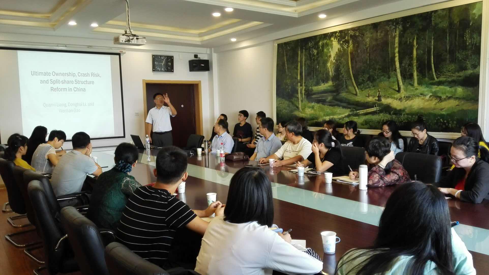 2018年9月27日上午9时,暨南大学管理学院会计系教授、博士生导师李东辉教授应邀在pp电子游戏官网办公楼410进行了题为"Ultimate Ownership,Crash Risk,and Split-share StructureReform in China"的学术报告,pp电子游戏官网老师及会计系研究生参加报告会。本次学术讲座为pp电子游戏官网国家级人才引智推进计划暨“周五学术之夜”系列讲座第六十期。