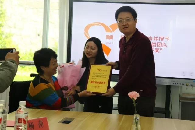 同沐阳光残疾人辅助就业中心主任杨萍和陈崇研共同为“pp电子游戏官网社会工作专业实践基地”的揭牌。杨萍女士介绍了同沐阳光社会工作站相关情况,希望能够与pp电子游戏官网大爱无声项目再次合作,建立起长期有效的合作机制。杨萍女士授予“大爱无声”公益团队“最佳社会责任奖”奖牌。