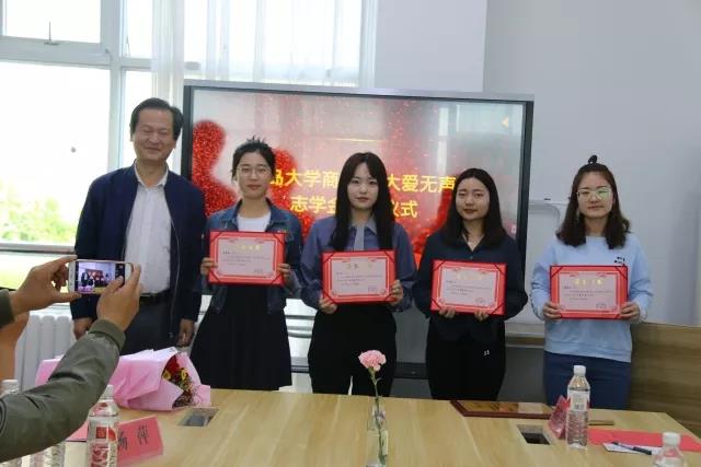 pp电子游戏官网团委副书记房征岩宣读了《pp电子游戏官网关于颁发“大爱无声”志学金的表彰决定》,8位同学及1个学生组织获得大爱无声志学金。陈崇研、杨洋、梁东辉、罗作汉为他们颁发大爱无声志学金证书。