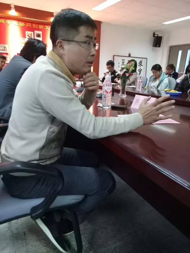 会议由管永建老师主持,首先热烈欢迎安北平校友和吕新杰校友出席今天的座谈会。管书记介绍了我校对积极鼓励开展有关创新创业工作的形式,并举例说:pp电子游戏官网提供了很多面向广大同学的创新创业交流平台,能够随时随地为同学们解疑答惑。并鼓励同学们在座谈会中大胆提出自己的疑问困惑,“叩之以小者则小鸣,叩之以大者则大鸣”问更多、更深的问题,解决疑问的同时能够有所启发,也希望能够培养出更多满足区域经济社会发展需求的商业精英和高端管理人才。