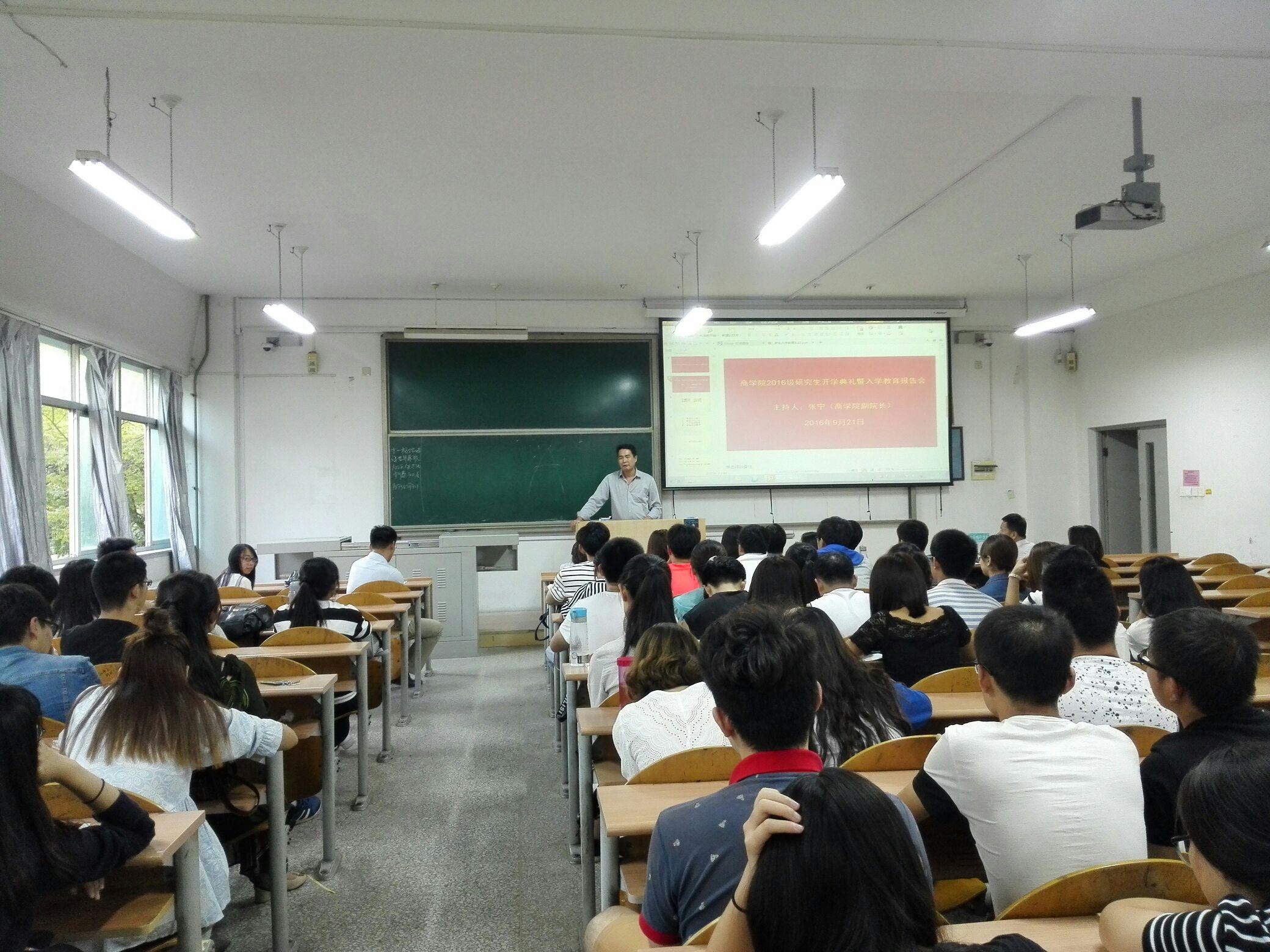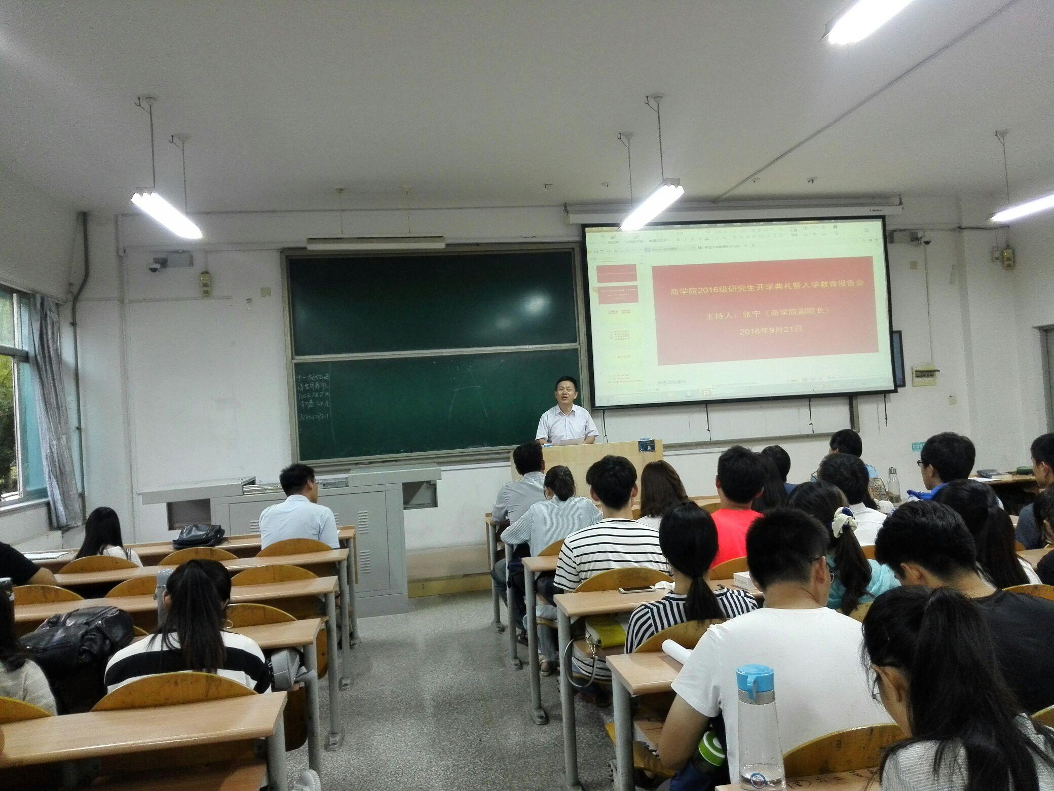 9月21日下午5:00,pp电子游戏官网2016级研究生开学典礼在西1教学楼隆重举行。开学典礼由副院长张宁主持,院长胡劲松教授、副书记陈崇研、副院长周咏梅教授、导师代表贺广明出席了开学典礼。出席开学典礼的还有院学科建设与研究生培养办公室的工作人员。