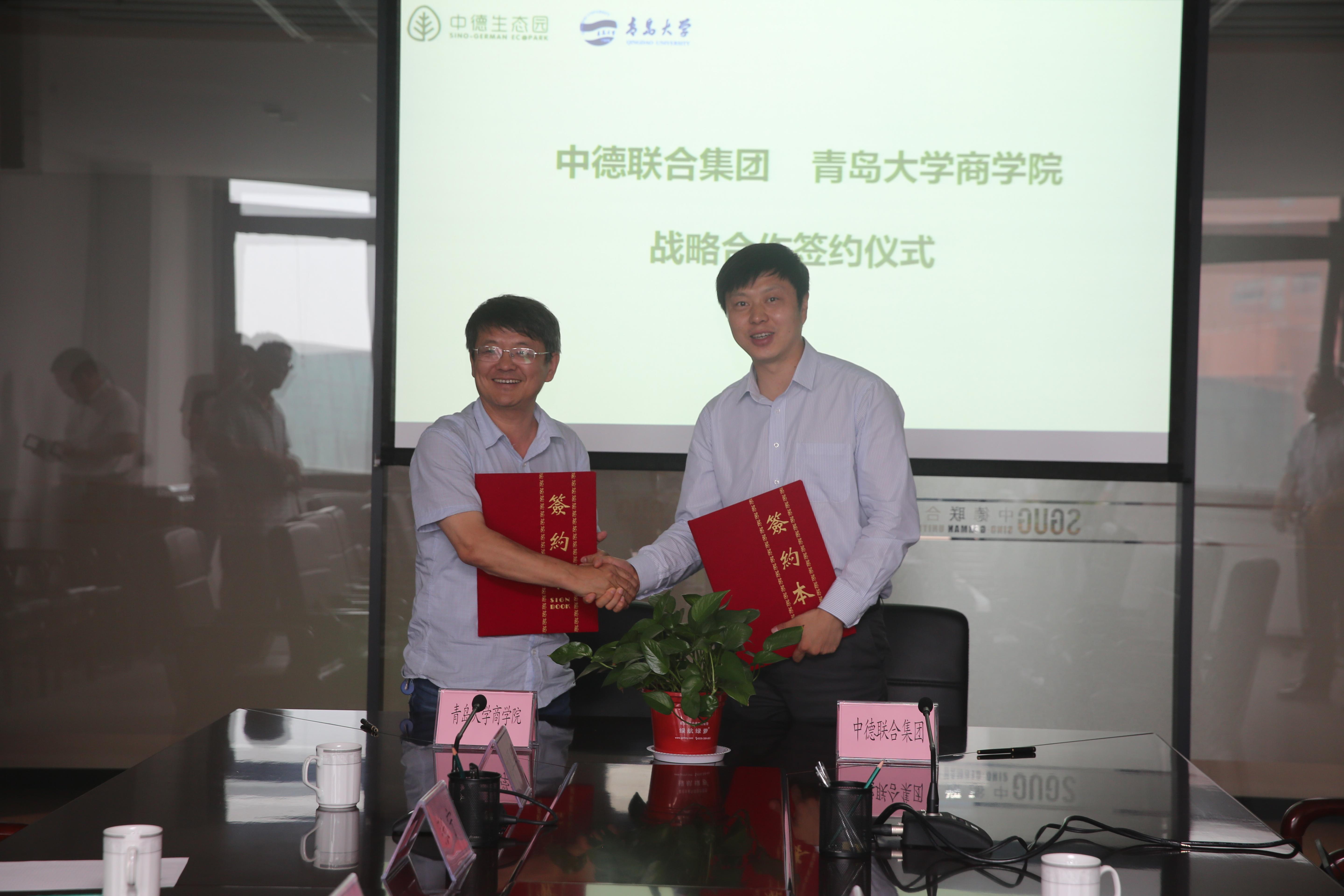 pp电子游戏官网与中德联合集团举行战略合作签约仪式。青大pp电子游戏官网96级校友、中德联合集团董事长汪舵与pp电子游戏官网党委书记管永建共同签署合作协议并为教学实践基地揭牌。管永建和汪舵各自介绍了学院、公司的具体情况、发展历程,管永建希望pp电子游戏官网能够和中德联合集团共同建立中德合作中心,真正的将企业与学院的优秀资源整合,为学校、学院、学生的发展提供最大的支持与帮助。汪舵董事长表示,作为青大商院人,愿意尽自己最大的努力为母校的发展尽自己一份绵薄之力。签约仪式结束,代表团参观了中德生态园区,中德生态园体验运营中心,了解生态园的概念规划、城市规划、指标体系。