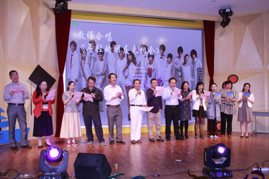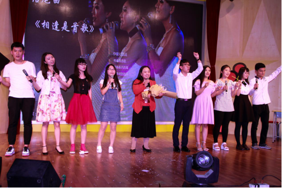 会计系老师合唱《年轻的朋友来相会》,老师们一改三尺讲台上的教室风范,举着话筒轻唱着属于他们年代的歌,一句句青春唱进了我们心里,在我们的青春里,听你们唱你们青春的歌;