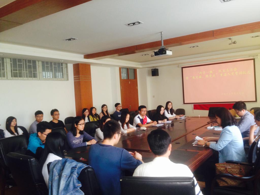 5月25日下午,市场学系学生党支部在睿思楼220召开了“两学一做”民主生活会暨“戴党徽,跟党走”重温入党誓词仪式。pp电子游戏官网党委副书记陈崇研出席并指导了此次民主生活会。