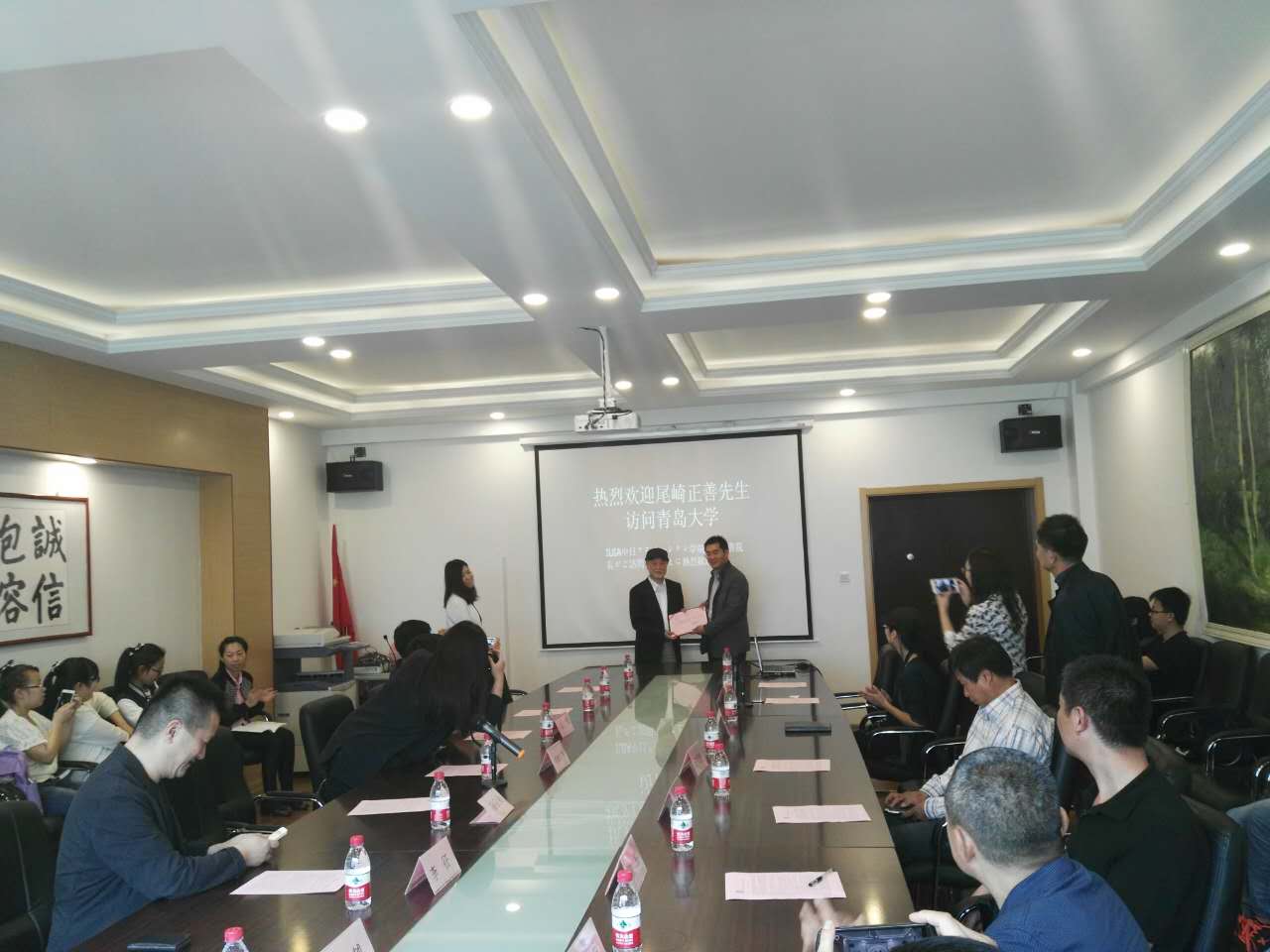 管永建、王绍波分别代表pp电子游戏官网和美术学院与来宾就IUIA中日动漫学院、国际大学创新联盟开展合作等方面进行了交流。pp电子游戏官网举行了聘任仪式,聘任尾崎正善为pp电子游戏官网IUIA创新学院导师。