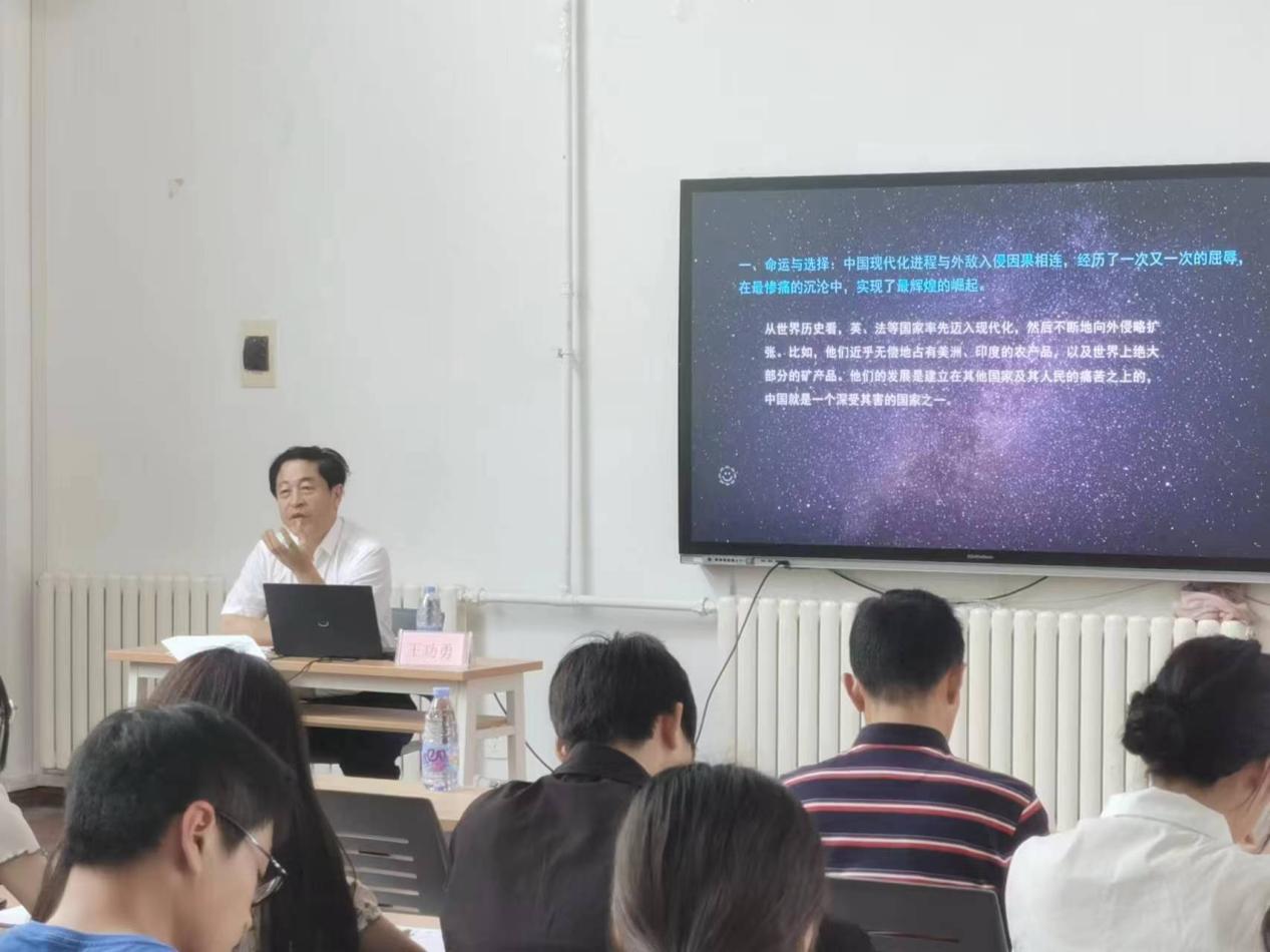 2023年6月8日下午,pp电子游戏官网党委书记王功勇在pp电子游戏官网办公楼107教室为2023春确定的入党积极分子和学团骨干讲党课,主题为“在中国式现代化中的使命与担当”。