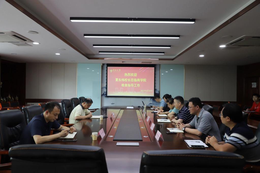 在走访调研MBA中心等部门后,夏东伟校长认真听取了pp电子游戏官网院长王庆金关于学院近几年工作汇报及未来工作计划。王庆金院长主要就人才培养、学科建设、科学研究及服务社会等方面做了汇报。