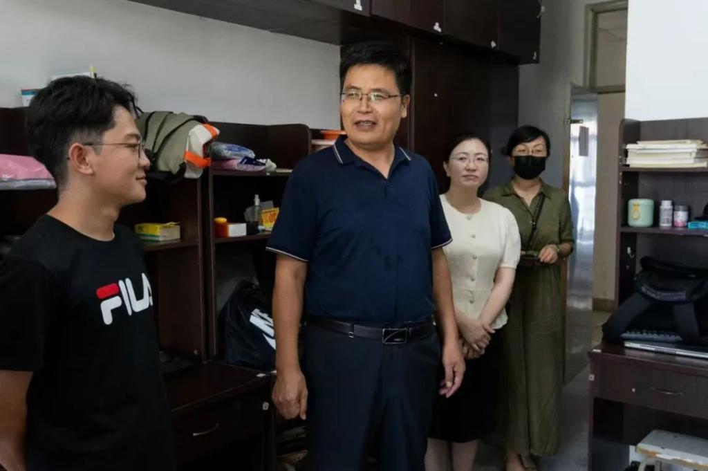 在学生宿舍,徐书记与同学们亲切交谈,“家是哪里的?”“是父母陪同过来的吗?”“有哪些需要解决的问题?生活费还够用吗?有没有什么困难?”一句句温暖的问候和关怀,瞬间拉近了师生之间的距离。徐书记着重强调了宿舍安全的重要性,提醒同学们注意寝室用电安全,提升消防安全意识;鼓励新生们迅速适应大学生活节奏,积极融入新的生活氛围,要调整好作息,养成良好的生活习惯,充分利用学校的学习资源,潜心学习,度过美好的大学生活。