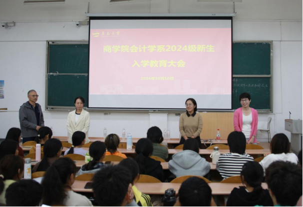 鲍在山进行了专业介绍,向新生们详细讲解了会计学专业的培养计划,对同学们未来的选课进行了指导,回答了如何学好会计学专业这一问题。他希望新生们能够在未来的日子里,不负韶华,学有所成。