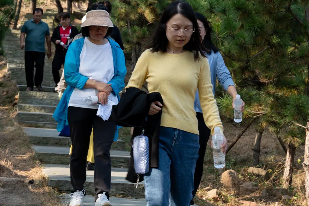 金秋时节的金岭山已是层林浸染,叠翠流金,漫步于山林之间,使人心旷神怡。一路上,老师们谈笑风生,一边欣赏斑斓的秋色,惊叹大自然的神奇秀美,一边交谈教学心得,分享自己的教学经验。
