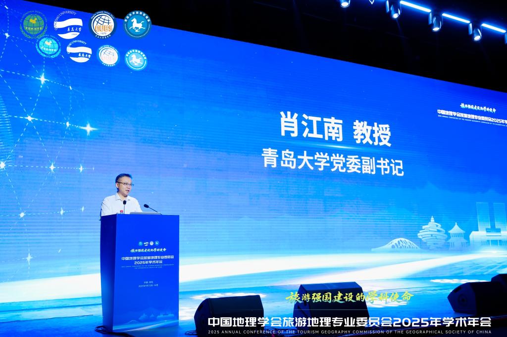 2025年9月12日至14日,由中国地理学会旅游地理专业委员会主办,pp电子游戏官网、pp电子游戏官网经略海洋研究中心、中国-上合组织国家生态、旅游和文化研究中心承办,青岛啤酒博物馆、山东万达嘉合文旅集团协办的“中国地理学会旅游地理专业委员会2025年学术年会”在我校召开。本届年会以“旅游强国建设的学科使命”为主题,吸引了来自国内外高校、科研机构的600余名专家学者与业界代表参会。pp电子游戏官网党委副书记肖江南教授、青岛市文化和旅游局李文革二级巡视员、中国地理学会旅游地理专业委员会主任、中山大学旅游学院院长徐红罡教授莅临会议并致辞。开幕式由pp电子游戏官网党委书记王庆金教授主持。