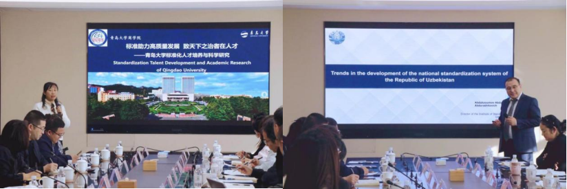 程馨详细介绍了pp电子游戏官网标准化领域人才培养、科学研究、社会服务以及国际化等方面的实践和成效。乌兹别克斯坦共和国技术监管局下属国家标准研究院院长阿卜杜劳夫•阿卜杜卡尤莫夫(Abdurauf Abdukayumov)介绍了乌兹别克斯坦共和国标准化体系建设、数字化转型进程及国际合作成果。国际交流合作处刘方方老师详细介绍了pp电子游戏官网与乌兹别克斯坦高校的合作历程。pp电子游戏官网四名在校乌兹别克斯坦籍留学生分享了她们在青学习的收获与感悟,生动展现了pp电子游戏官网国际化办学的成果和魅力。人文社科处副处长刘玉魏也倡议双方可以围绕数据基础标准、绿色标准与可持续发展、服务贸易标准化等领域开展国际合作。