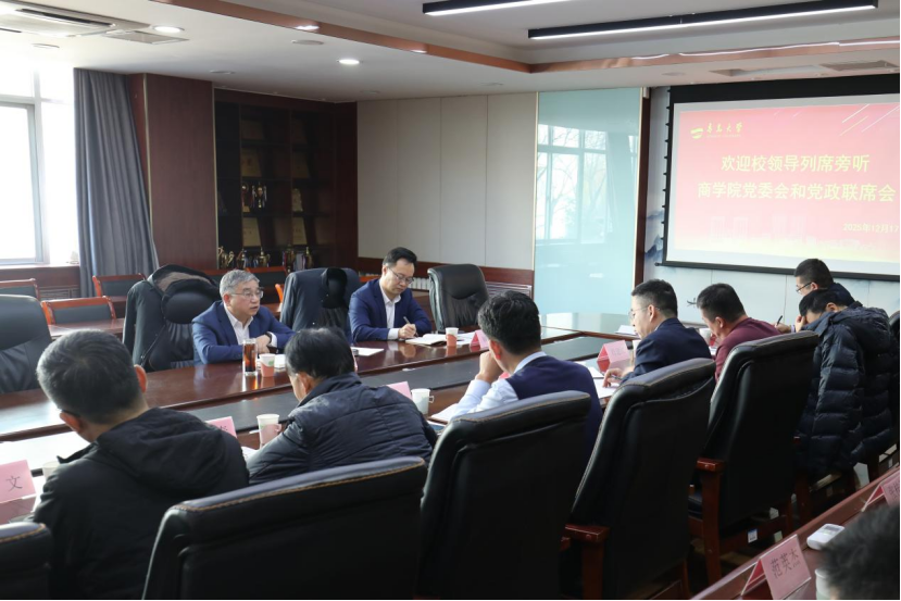 12月17日上午,校党委书记胡金焱在金家岭校区守正楼310会议室列席旁听商学院2025年第31次党委会、第31次党政联席会。