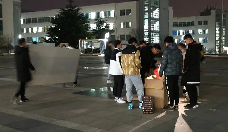 2.傍晚时,pp电子游戏官网学生会的同学便聚集在一起,将活动所需的画稿,荧光棒等物品分别摆放在了图文中心,篮球场和四号宿舍楼和六号宿舍楼的途径道路上,画稿为塑料泡沫所制作,十分易碎,在运送过程中pp电子游戏官网同学们小心翼翼,为的是更好地为准备考研的学长学姐们鼓舞助力。