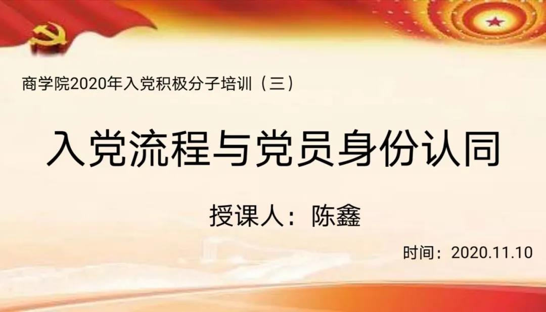 2020年11月10日下午三时,pp电子游戏官网入党积极分子培训班第三讲在pp电子游戏官网金家岭校区图文报告厅开展,pp电子游戏官网会计学系团总支书记,会计学系本科党支部书记陈鑫老师授课“入党流程与党员身份认同”。