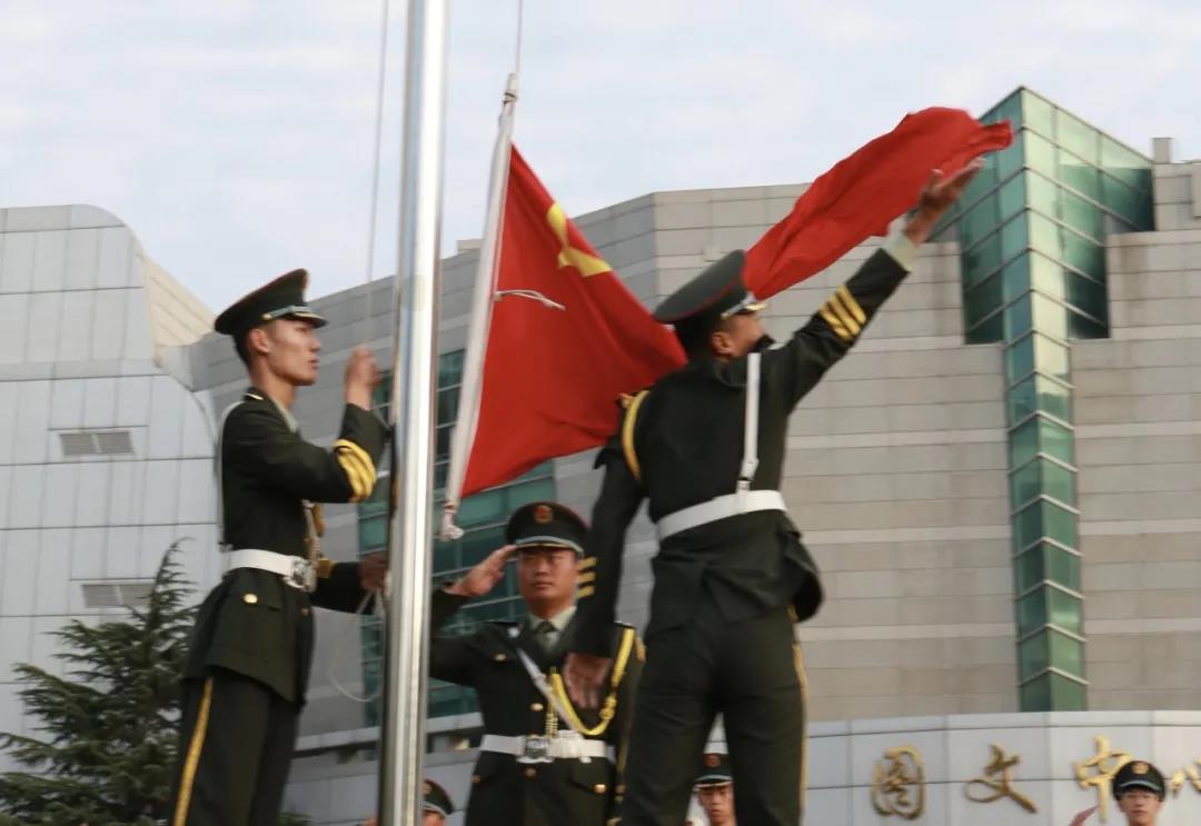为弘扬爱国主义精神,增强民族自豪感,10月1日早上7:00,在举国上下欢度国庆之际,“庆祝中华人民共和国成立71周年”升国旗仪式在图文中心前广场举行。驻金家岭校区各学院学生工作分管副书记、各学院团委书记、2020级新生辅导员、2020级学生1400余人参与此次升旗仪式。