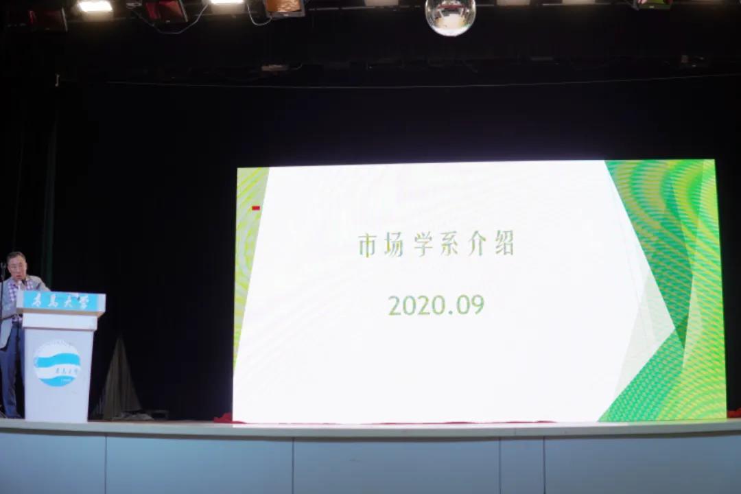 市场学系主任王海宁老师介绍了本系的师资力量,同时介绍了人力资源管理专业和市场营销专业的培养目标、主干学科、大类专业必修课、专业基础必修课以及核心课程,同时向新生表明了专业的毕业去向及社会贡献,展示了专业的科研成果和学生活动。