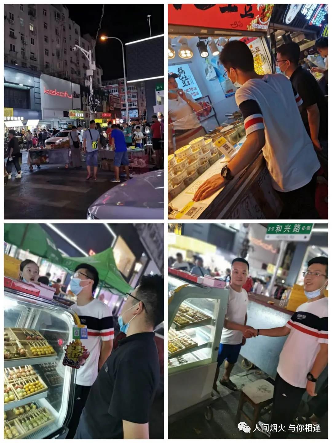 城管采访:在即墨区家居博览中心,新兴夜市的城管队伍中,我偶遇了负责卫生清理的城管老哥,在和他的闲聊中获悉目前在做协调好商家和环卫工作者之间的工作,让商家更加合理的规范、处理垃圾,减少并集中,便利清洁人员的清理。来和他来交谈中了解到他今天竟然一整天只吃了一顿饭,在这个雨夜,他们注定是无眠的。