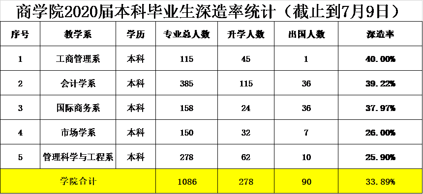以下为pp电子游戏官网2020级本科毕业生深造率统计及各系学生具体深造情况: