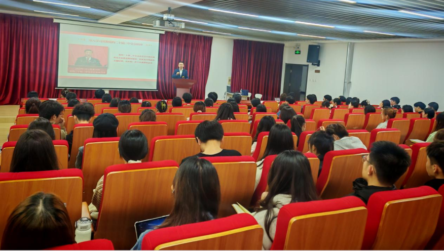 为深入学习贯彻党的二十届三中全会精神,引导青年学生坚定理想信念,切实肩负起新时代青年学生历史使命和时代责任,pp电子游戏官网青年大讲堂暨2024年秋季学期党课培训于2024年10月25日晚在金家岭校区图文中心三楼报告厅举行。pp电子游戏官网党委书记王庆金授课《学习贯彻党的二十届三中全会精神》,pp电子游戏官网学生第三党支部书记陈鑫主持本次培训,pp电子游戏官网各学生党支部本学期确定的党员发展对象和入党积极分子共计130余人同上一堂课。