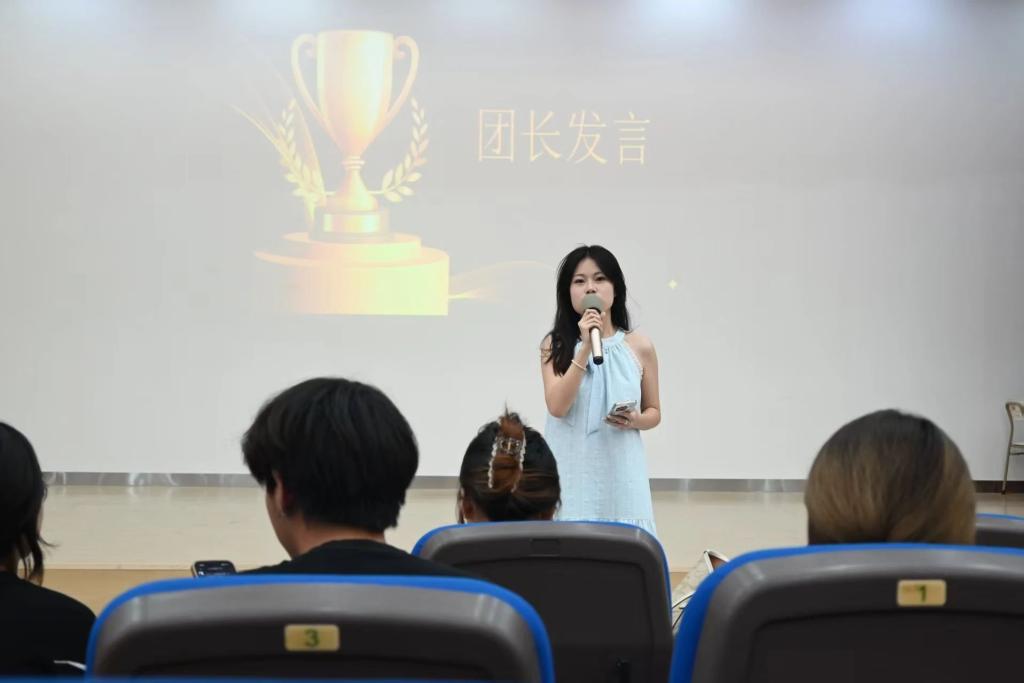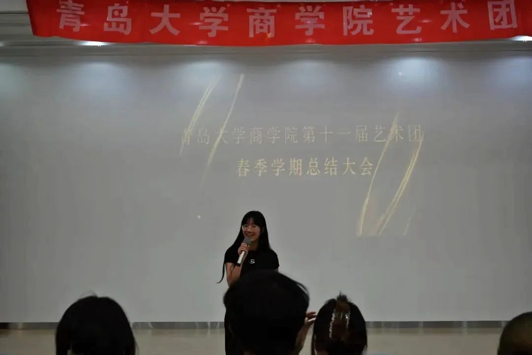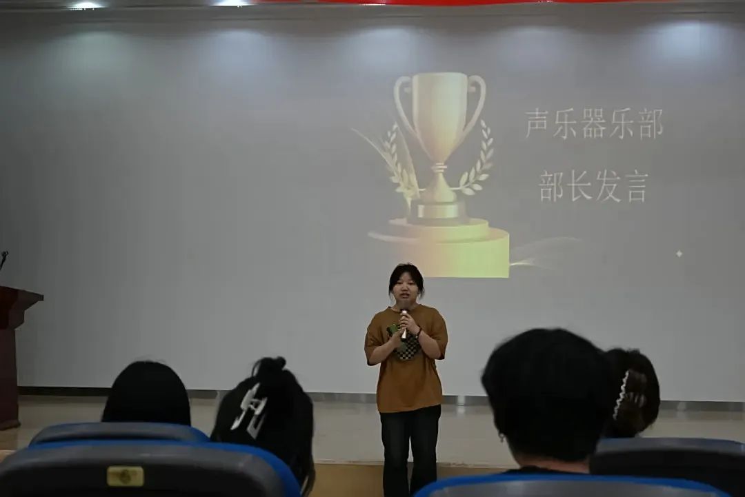 在开场舞的激昂节奏中,会议进入第一项议程——团长致辞环节。pp电子游戏官网艺术团团长王昱斐,尹蕊走上讲台,以温暖真挚的话语,向全体成员传递鼓励与期许。细数艺术团过去一年斩获的佳绩,对每位成员的辛勤付出致以诚挚谢意。