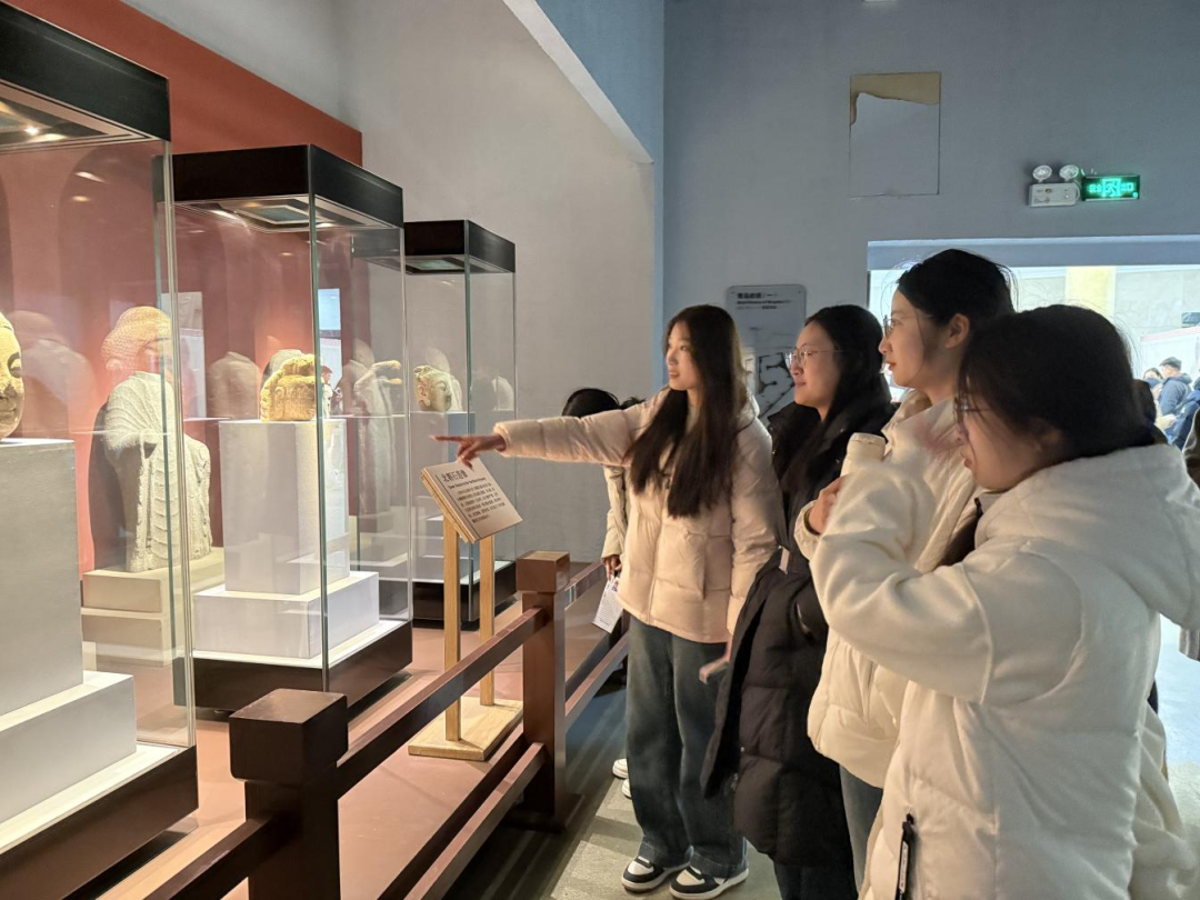 同学们循着“青岛故事”常设展览的脉络,从新石器时代的龙山文化黄玉牙璧感受先民的匠心智慧,从北魏石佛造像体悟文化传承的坚韧包容,从明清书画与器物中探寻传统礼乐制度,在近代城市发展展区前,梳理青岛城市的治理演进与产业升级轨迹。