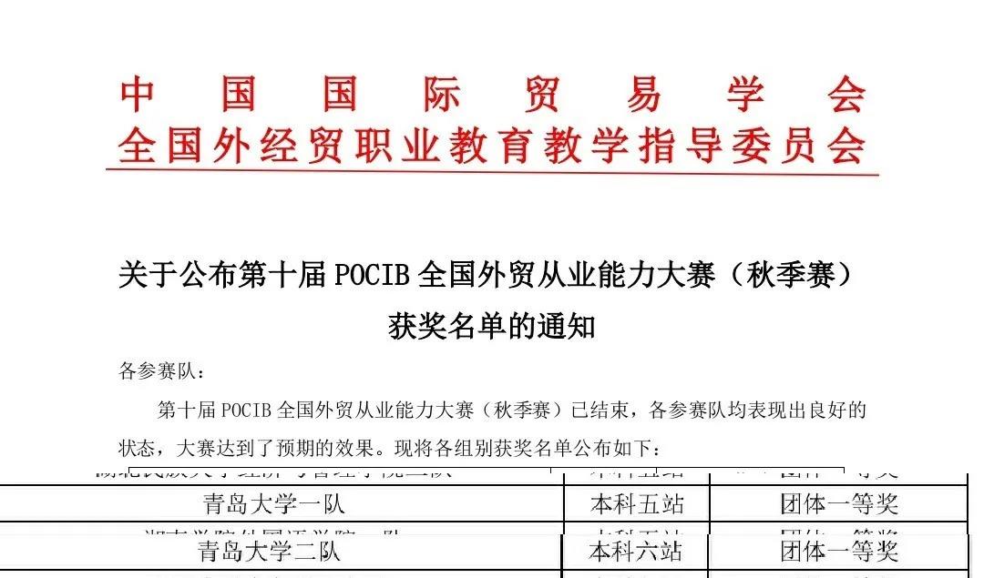 pp电子游戏官网国际商务系二十位同学组成的两个团队在第十届POCIB全国外贸从业能力大赛中荣获两项团体国家一等奖,1项个人国家一等奖、5项个人国家二等奖、9项个人国家三等奖。