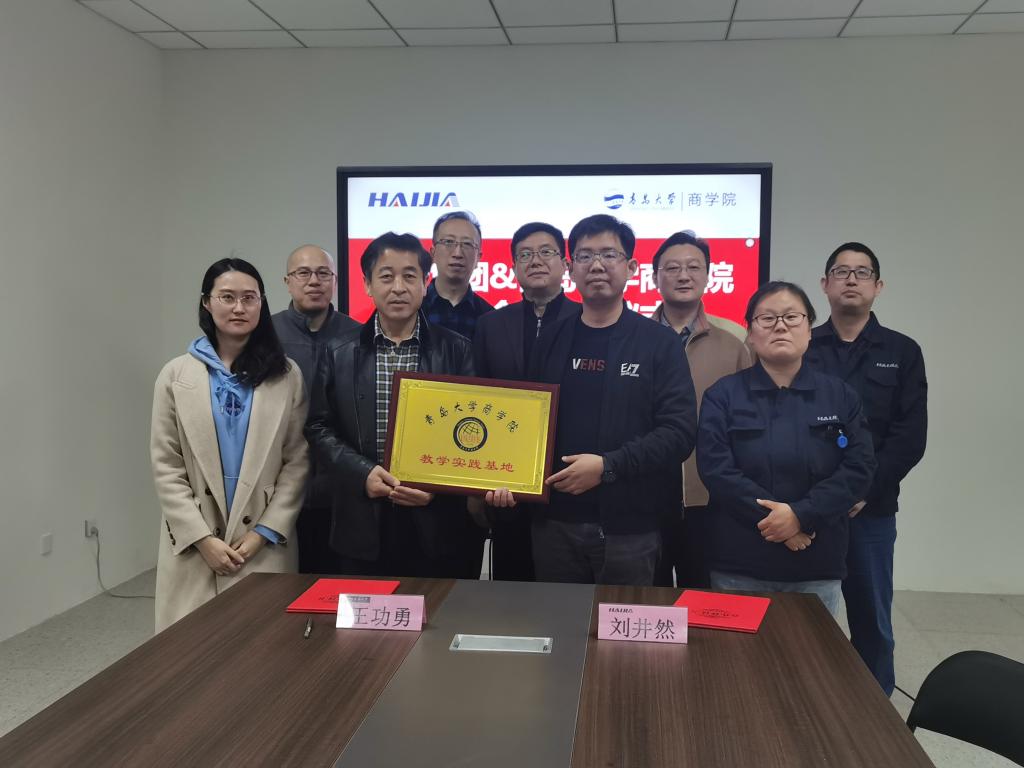 2021年4月24日,pp电子游戏官网与青岛海佳集团教学实践基地签约挂牌仪式在海佳集团新厂区会议室举行。pp电子游戏官网优秀校友海佳集团总经理刘井然、常务副总经理宋方军、办公室主任康喜娟、人力资源部部长王胜楠、pp电子游戏官网党委书记王功勇、党委副书记于文、学工办主任李鹏、团委书记姜雪峰、国际商务系团总支书记王国栋出席了签约仪式。