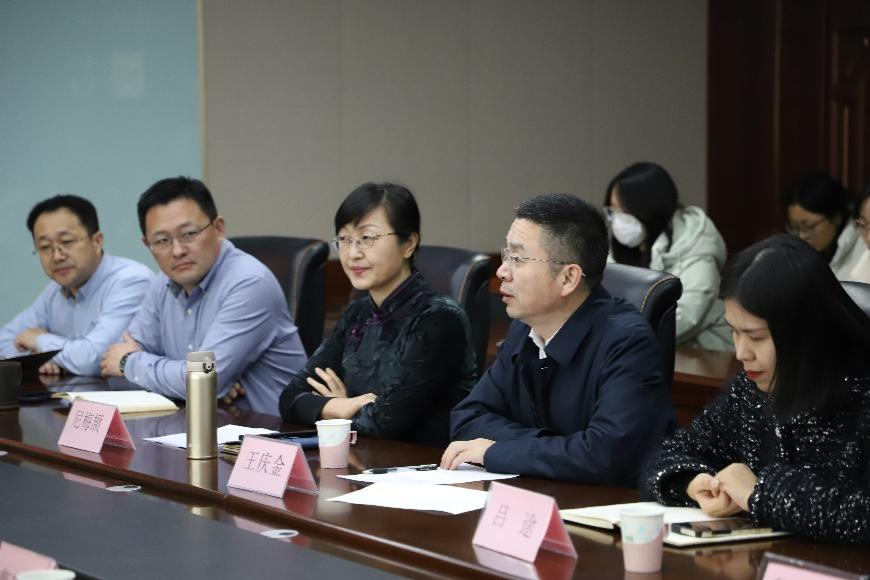 王庆金代表学院对铁投集团李总一行表示热烈欢迎,并从学院基本情况、学科特色优势、人才培养特色等方面做了简要介绍;李学谦介绍了山东铁投集团基本情况,并表示未来将组织规划实习项目,为学生提供深入了解企业的平台,助力学生成长。