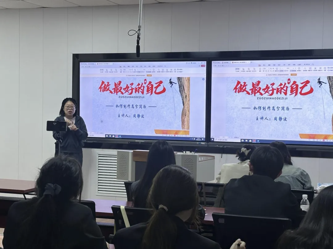 2025年5月15日,pp电子游戏官网精进班邀请到资深HR导师周静波,她和25位学员一起在pp电子游戏官网办公楼307教室开展了一场主题为《个人简历与求职信重塑》的专业技能课程,大家在两个小时里一同开启了一场深度学习之旅。