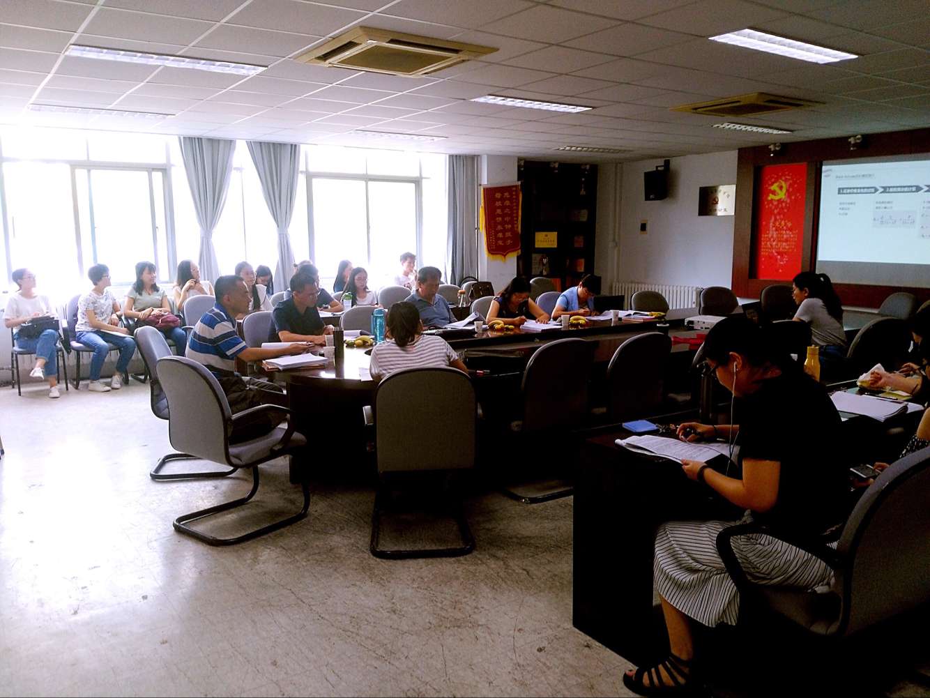 此次会议分成三个小组进行。首先,由各小组同学按照顺序依次对自己的论文进行说明,主要包括论文结构和论文主要内容,主要内容大体包括论文题目、研究目的和意义、国内外研究现状、研究对象所存在问题及相关案例等。