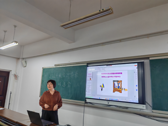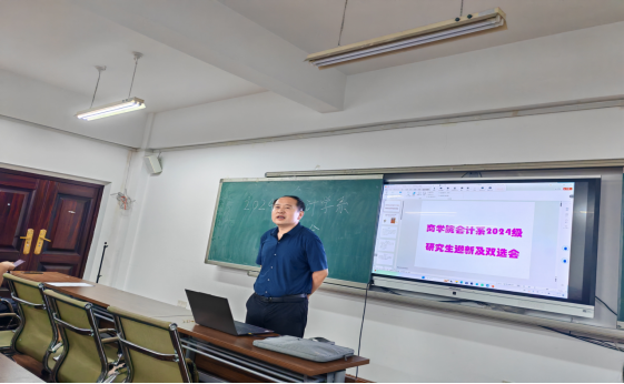 会计学系系主任范英杰教授介绍了pp电子游戏官网会计学系的基本情况,重点介绍了会计学系专业和学科建设情况、师资条件、研究成果等,并向同学们介绍了会计学系各位导师。