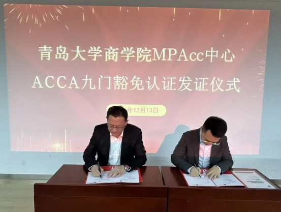 仪式核心环节中,pp电子游戏官网副院长张磊与ACCA山东区负责人胡景皓共同签署合作协议。握手签约的瞬间、证书交接的时刻,不仅定格了双方深度合作的重要节点,更意味着青大MPAcc学子将享受国际顶级财会资格认证的专属福利,职业发展之路自此更添助力。